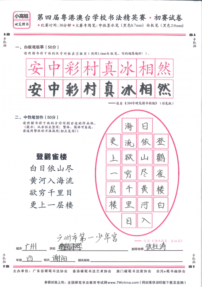 硬笔·小高组