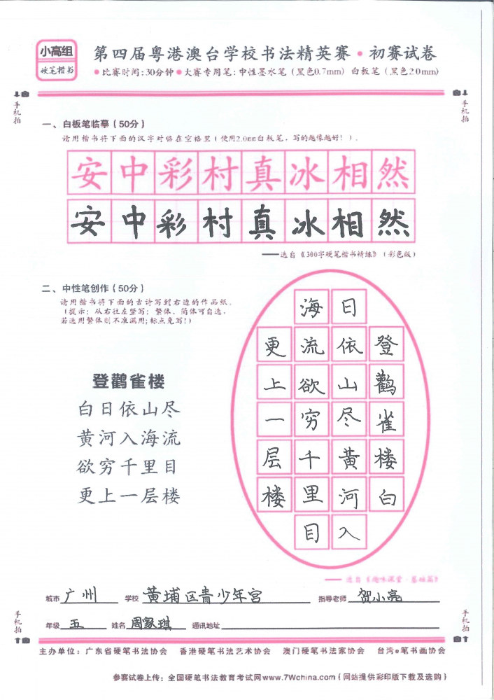 硬笔·小高组