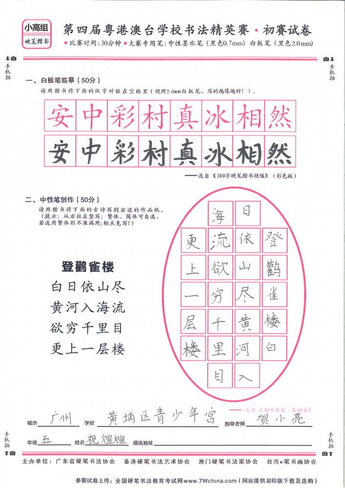 硬笔·小高组