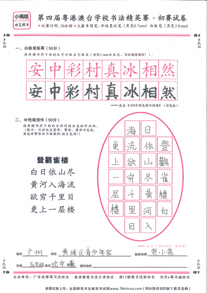 硬笔·小高组