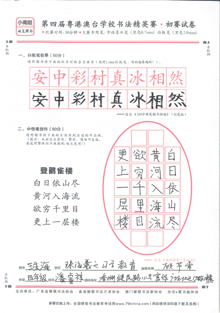 硬笔·小高组