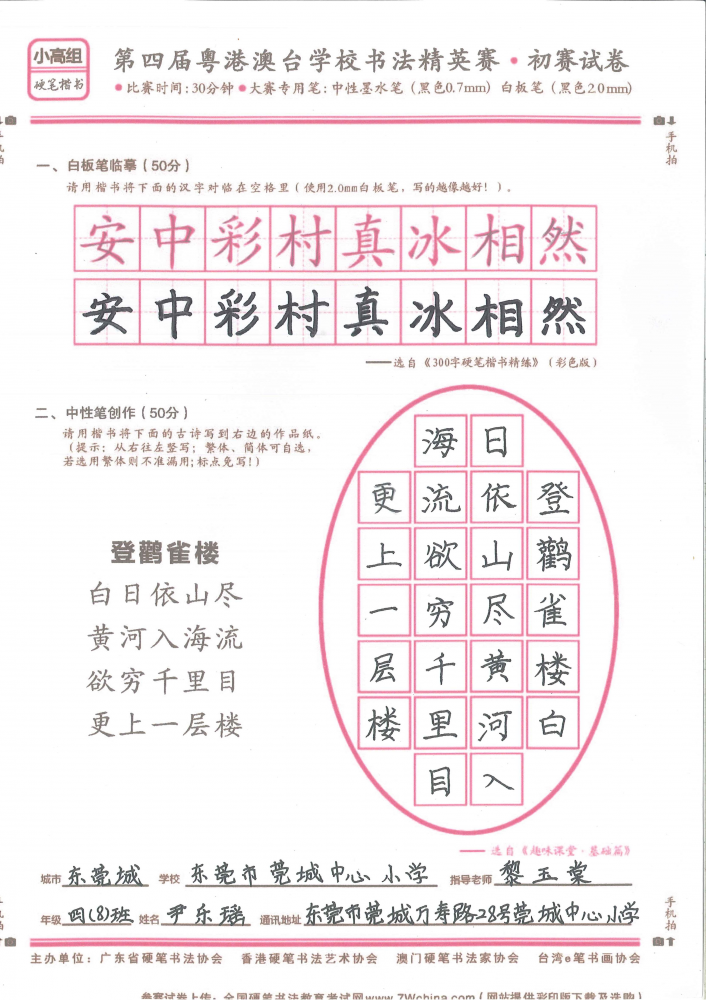 硬笔·小高组