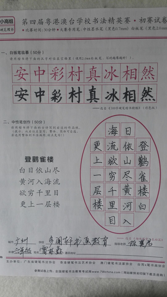 硬笔·小高组