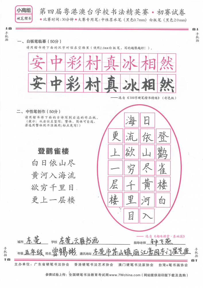 硬笔·小高组