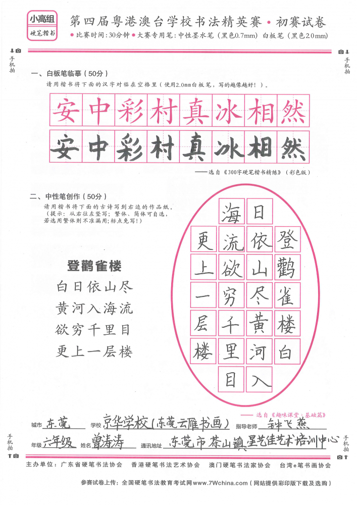 硬笔·小高组