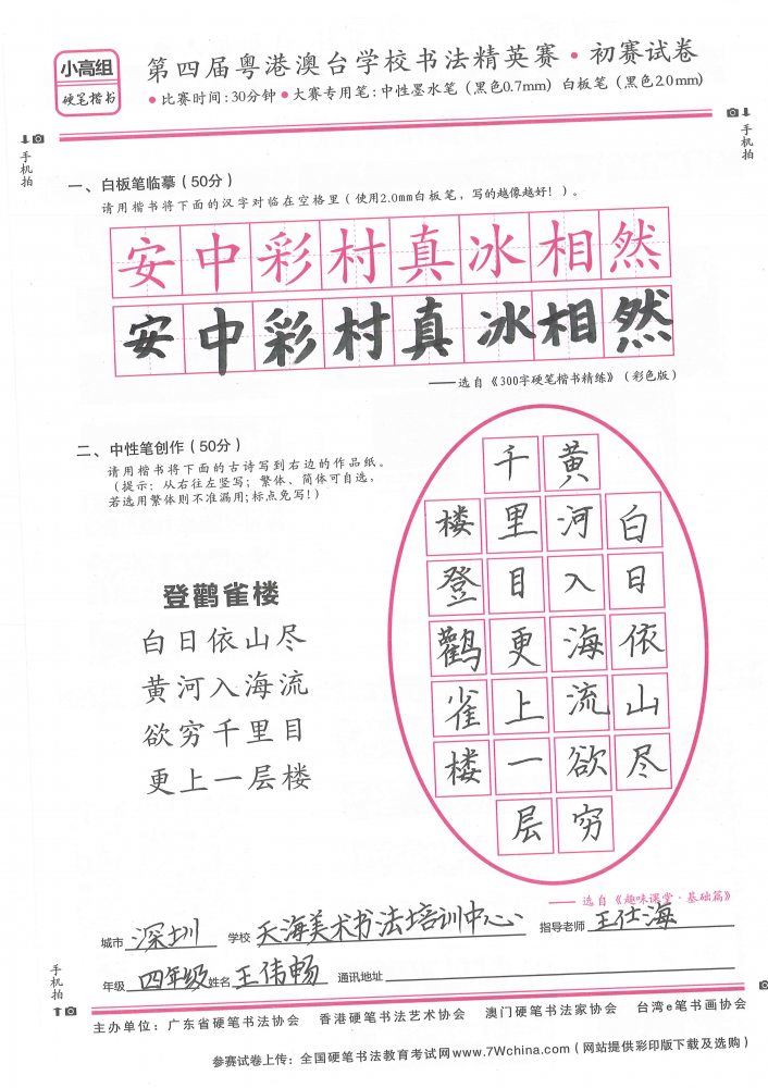硬笔·小高组