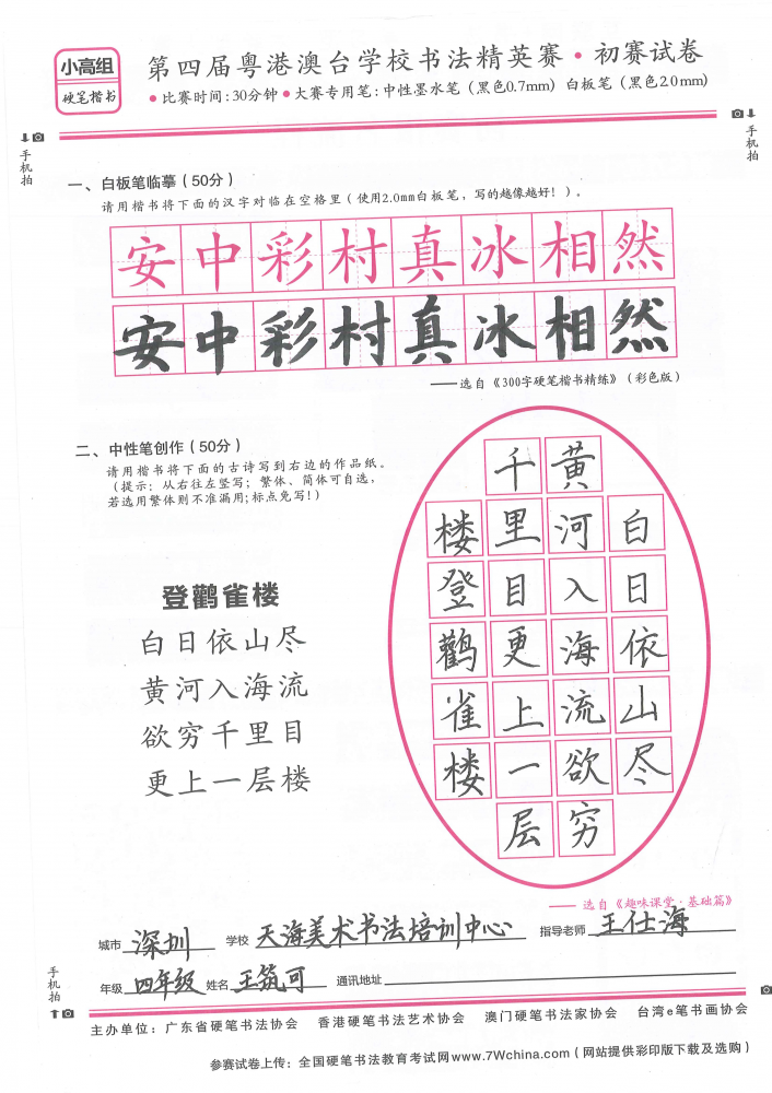 硬笔·小高组