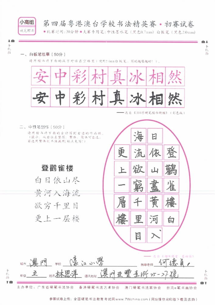 硬笔·小高组