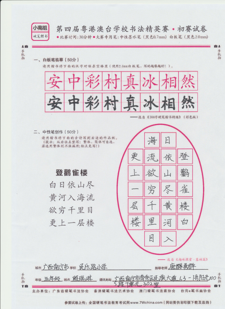 硬笔·小高组