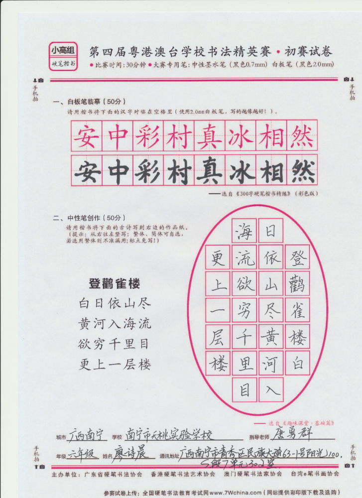 硬笔·小高组