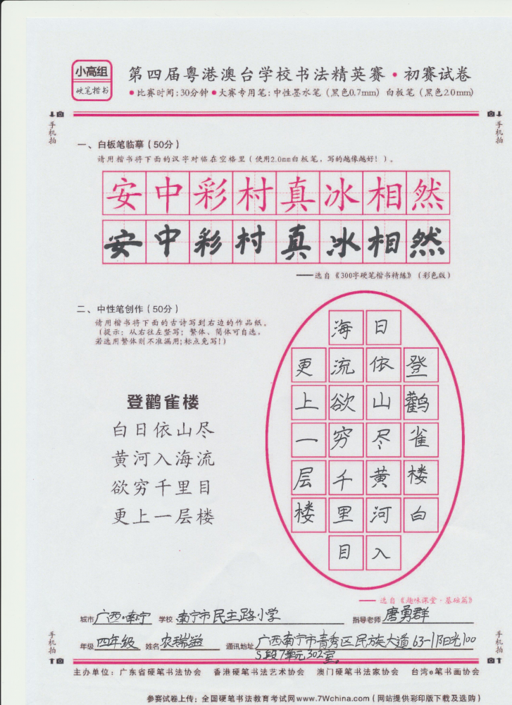 硬笔·小高组