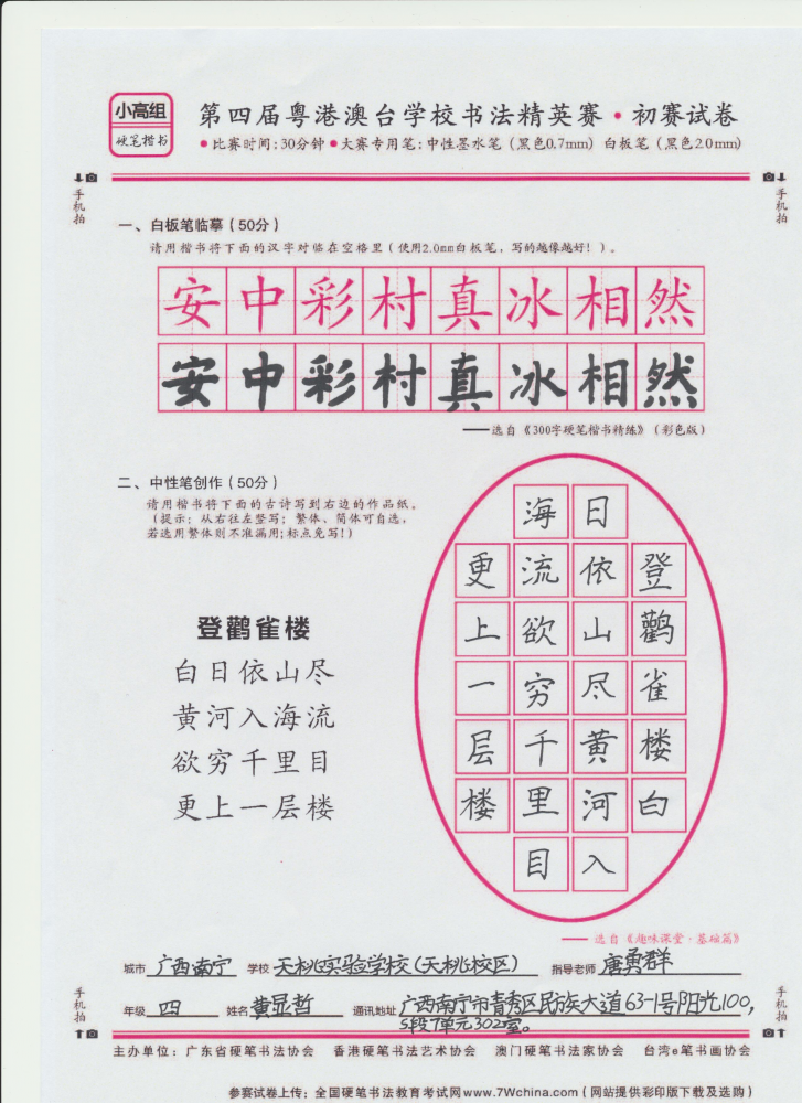 硬笔·小高组