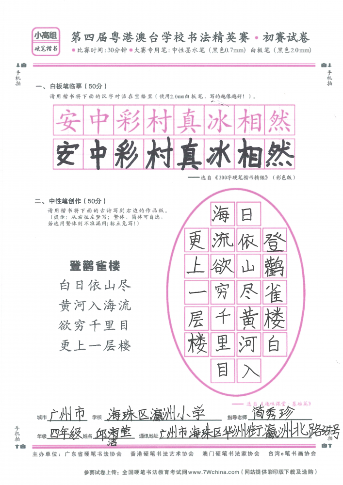 硬笔·小高组