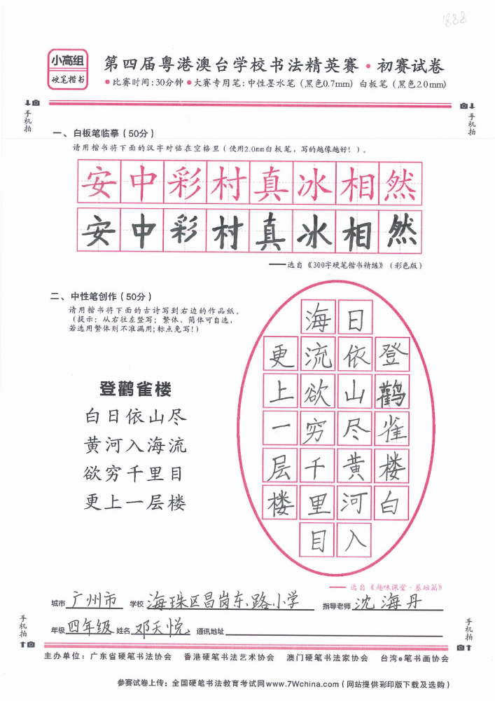 硬笔·小高组