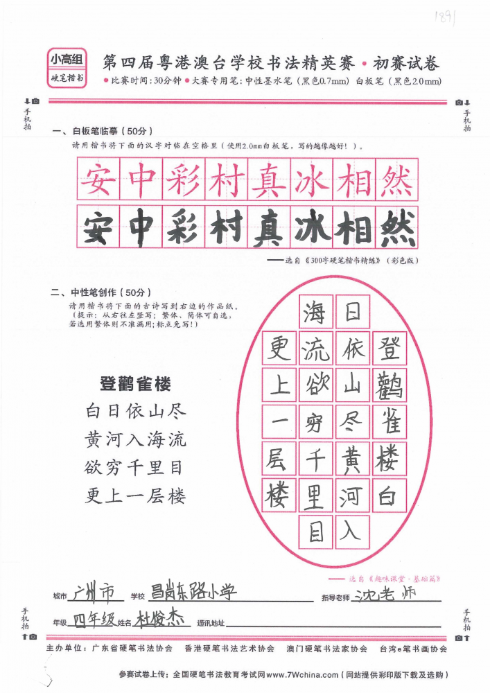 硬笔·小高组