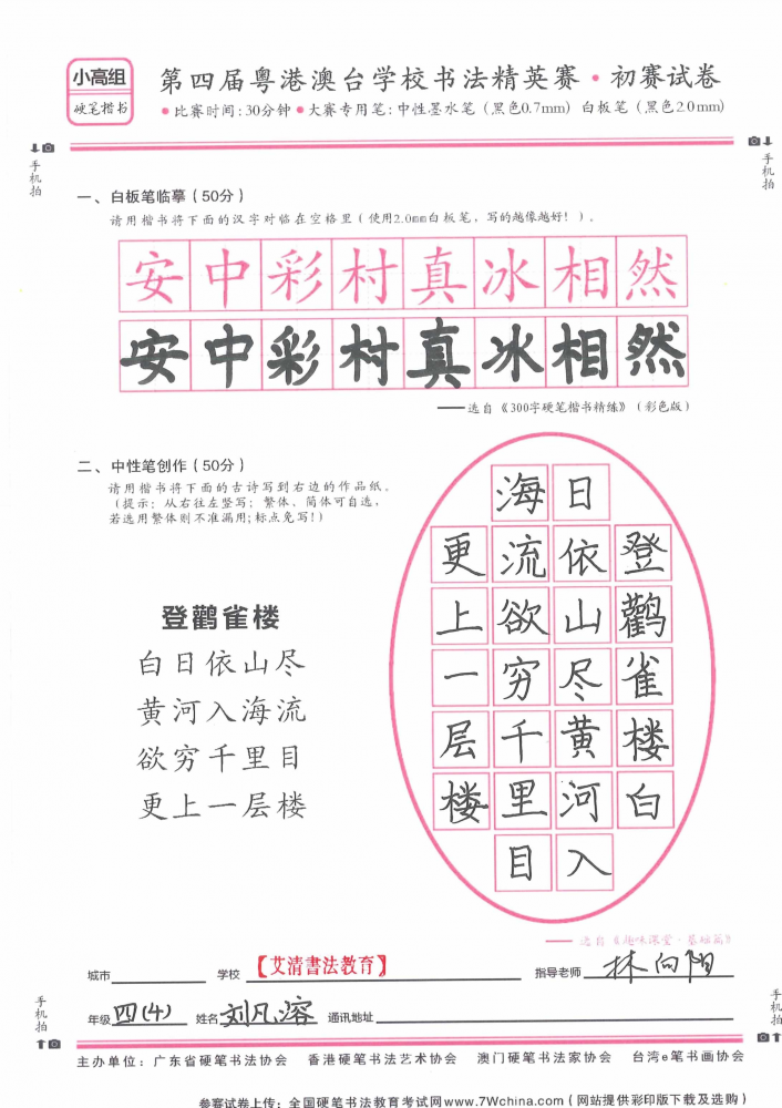 学校:深圳爱艺堂艾清书法教育(学校作品专页)