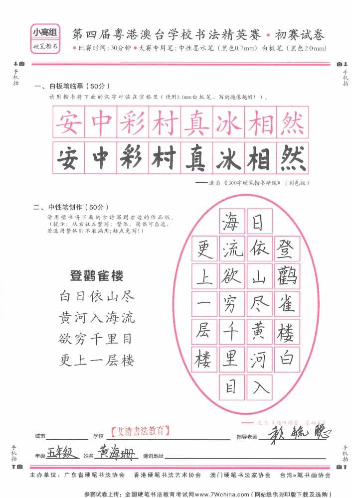 学校:深圳爱艺堂艾清书法教育(学校作品专页)