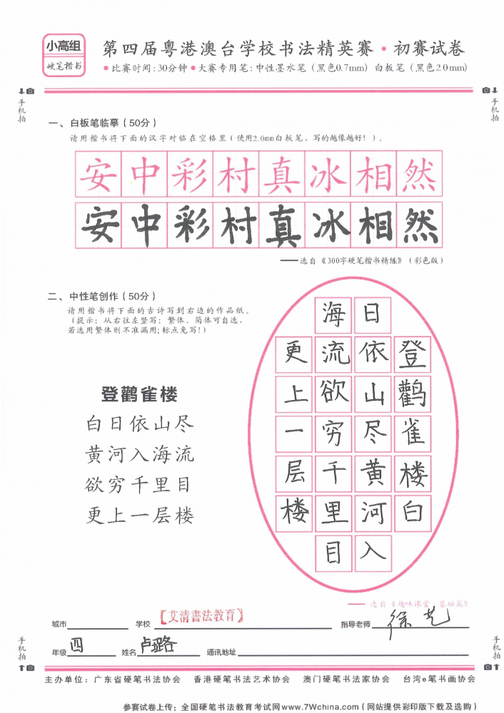 学校:深圳爱艺堂艾清书法教育(学校作品专页)