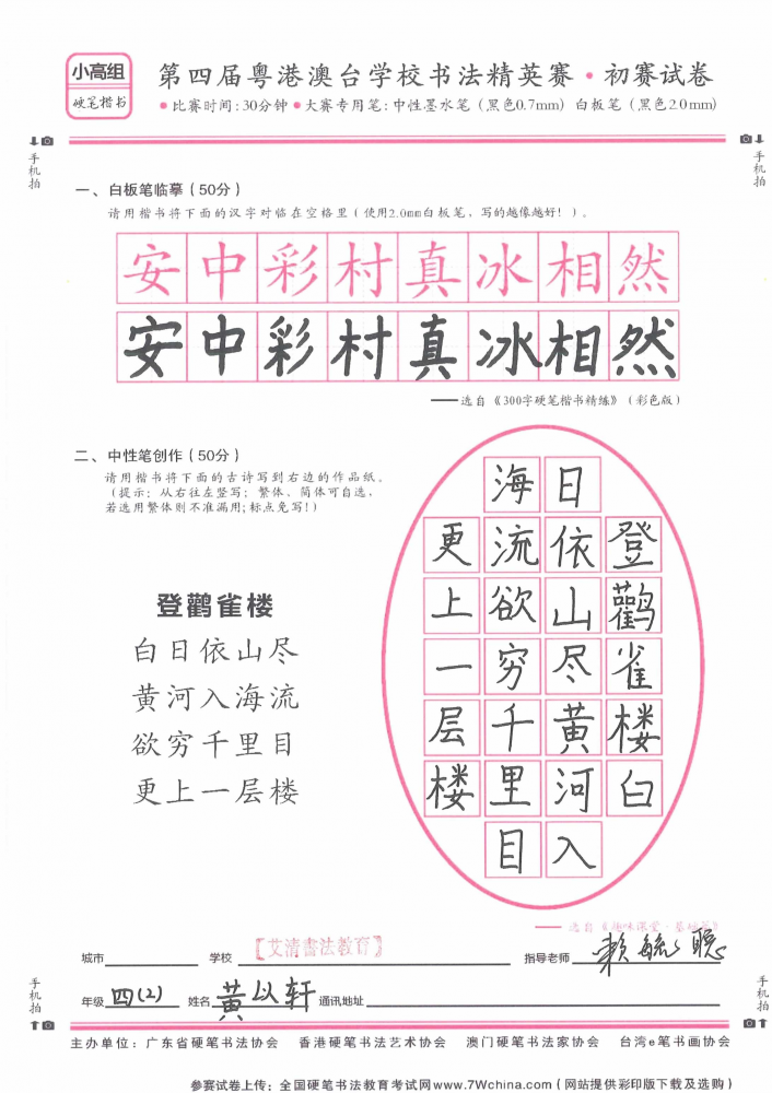 学校:深圳爱艺堂艾清书法教育(学校作品专页)