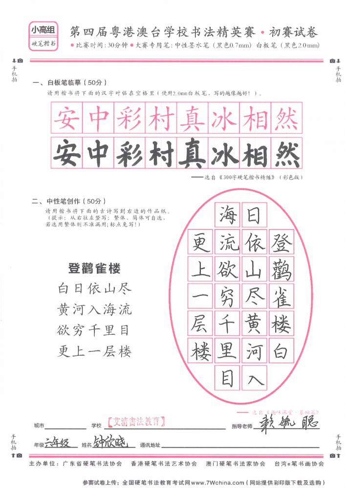 学校:深圳爱艺堂艾清书法教育(学校作品专页)