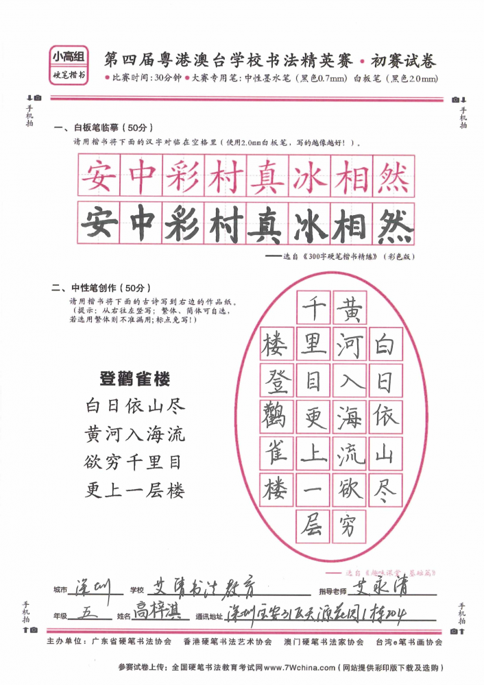 学校:深圳爱艺堂艾清书法教育(学校作品专页)