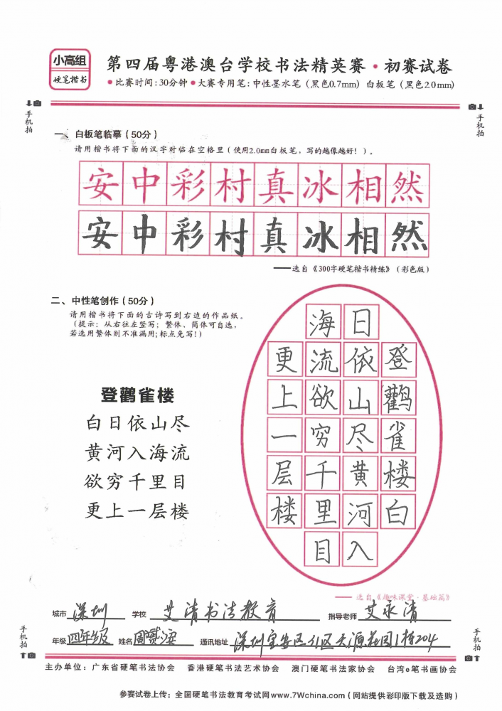 学校:深圳爱艺堂艾清书法教育(学校作品专页)