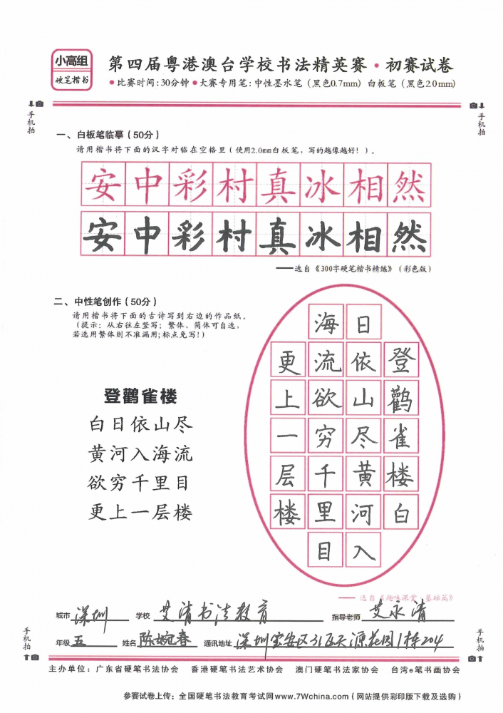 硬笔·小高组