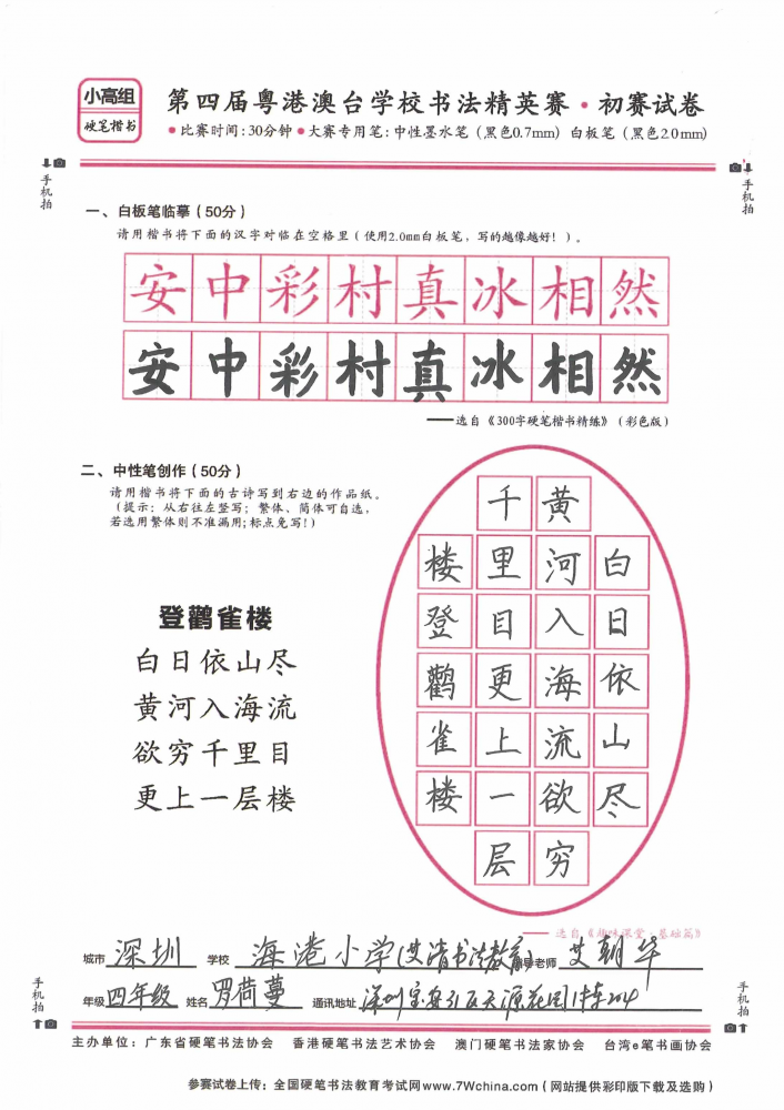 学校:深圳爱艺堂艾清书法教育(学校作品专页)