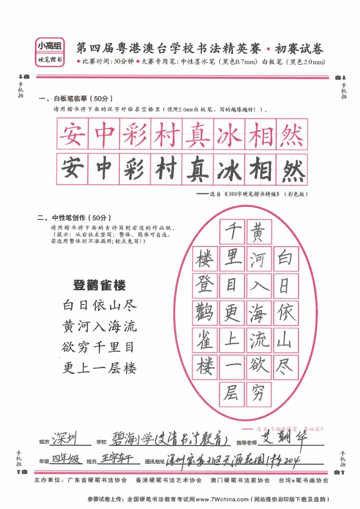 学校:深圳爱艺堂艾清书法教育(学校作品专页)