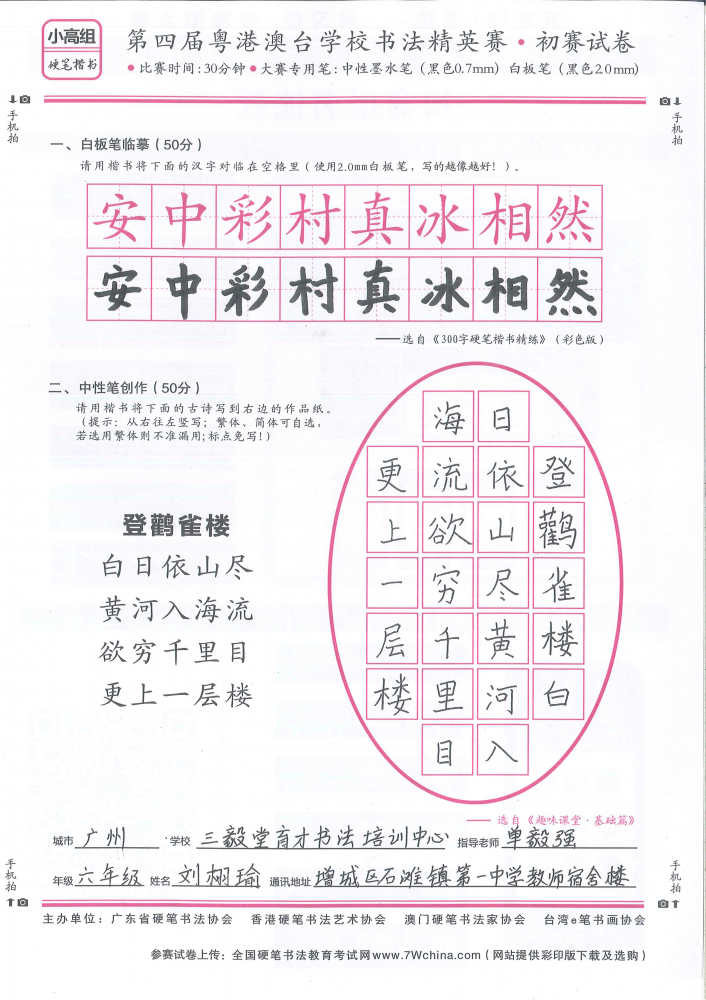硬笔·小高组