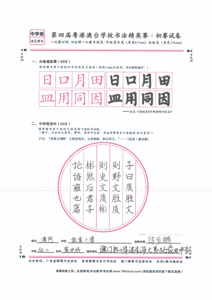 硬笔·中学组