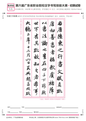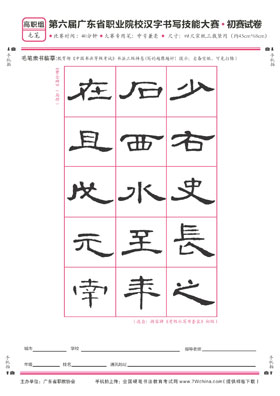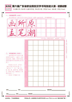 1.参赛样卷及要求:登录www.7Wchina.com全国硬笔书法教育考试网自行下载各组别大赛试卷。