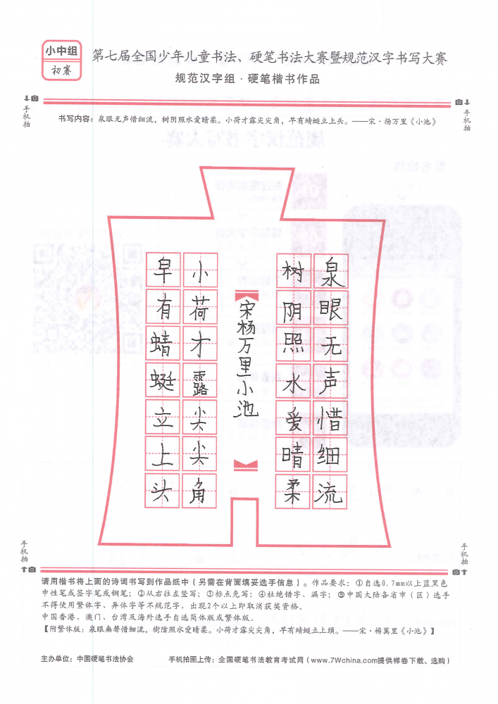 组别:规范汉字小中组