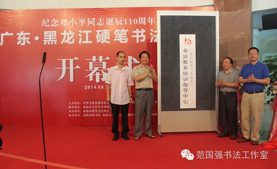 8月30日上午,由中华文化发展促进会、广东省硬笔书法协会、中国硬笔书法黑龙江工作委员会联合主办、珠海市硬笔书法协会承办的纪念邓小平同志诞辰110周年——广东•黑龙江硬笔书法联展在珠海市图书馆隆重开幕。