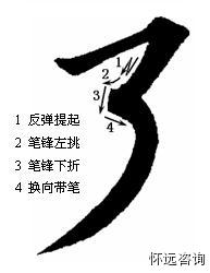 三、悬针竖 1、收锋要在正中。收笔完成时,笔锋要在笔画的中轴线上,这就要求起笔转笔时要到位,保证笔锋的方向指向正前方且在笔画正中央。2、笔画要饱满。铺毫行笔要写到整个笔画的四分之三或五分之四方可提笔收锋。3、收锋动作小。反弹转换动作幅度要小,写出的笔画才能精致利索。