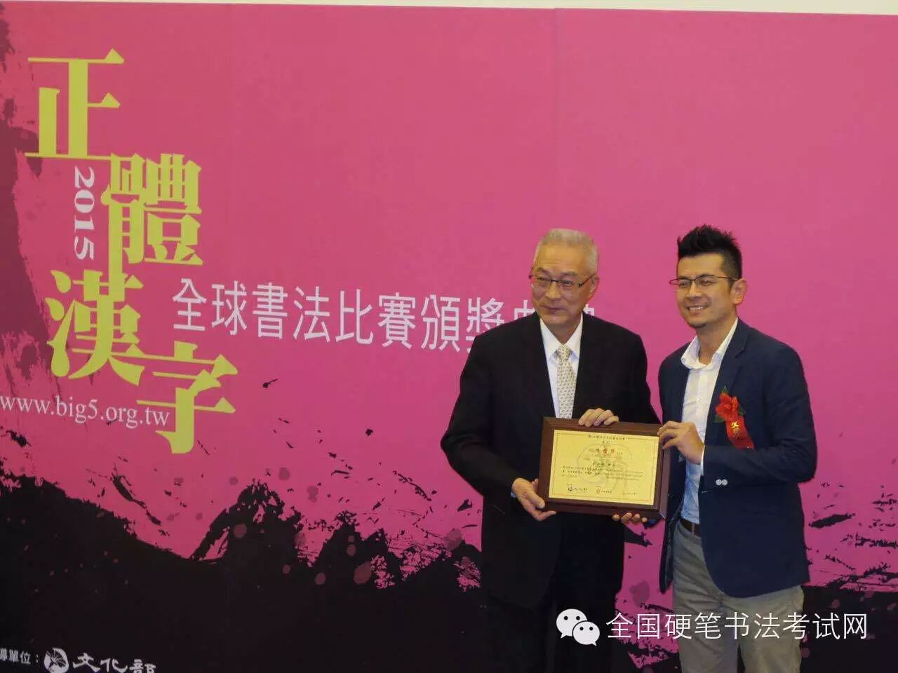 台湾的吴敦义先生担任此次全球书法比赛的颁奖人。