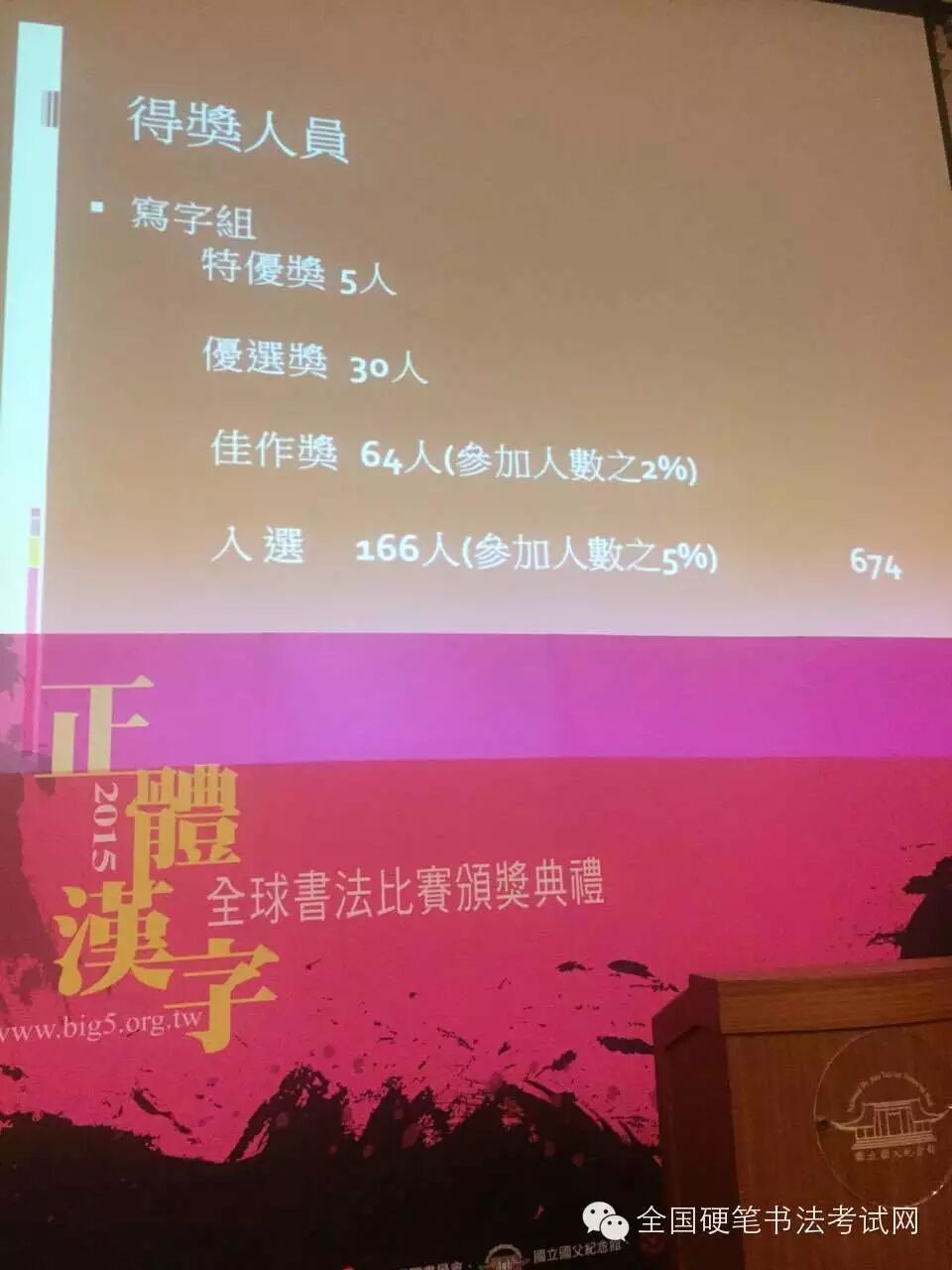 写字组:特优奖5人,优选奖30人,佳作奖64人(占参加人数的2%)